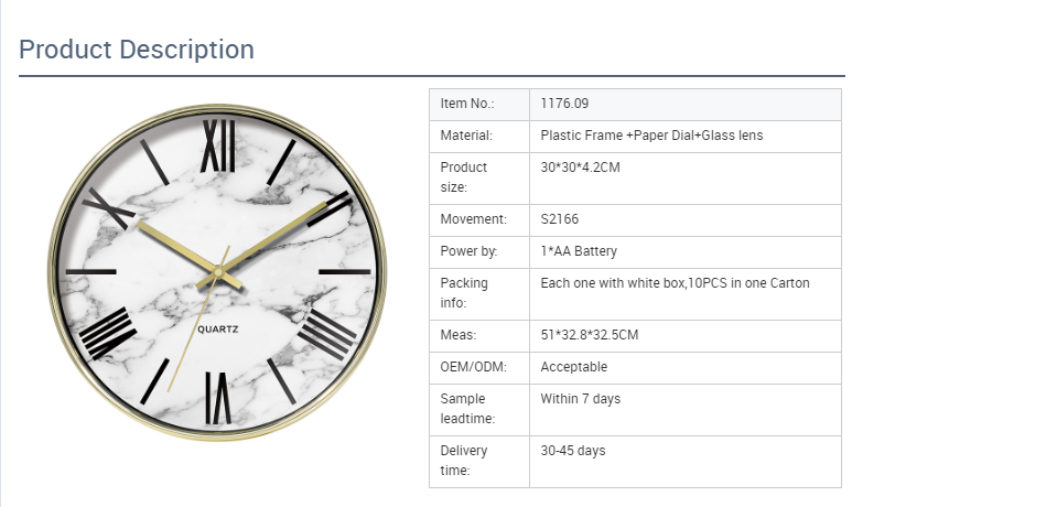 DHENG 12 inch Gold Frame with Roman Number Clock Dial Decoration Plastic Wall Clock