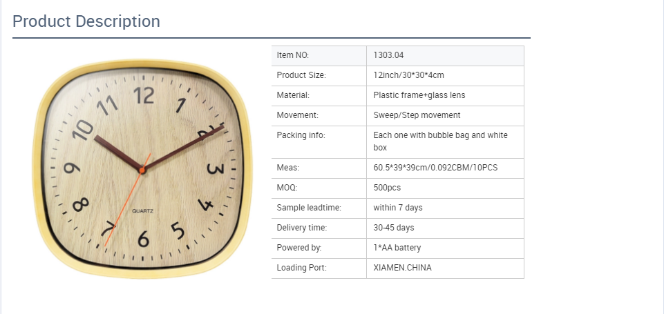 Wholesale 12 inch Cheap Wall Clock Wooden Color Plastic Wall Clocks Home Decoration